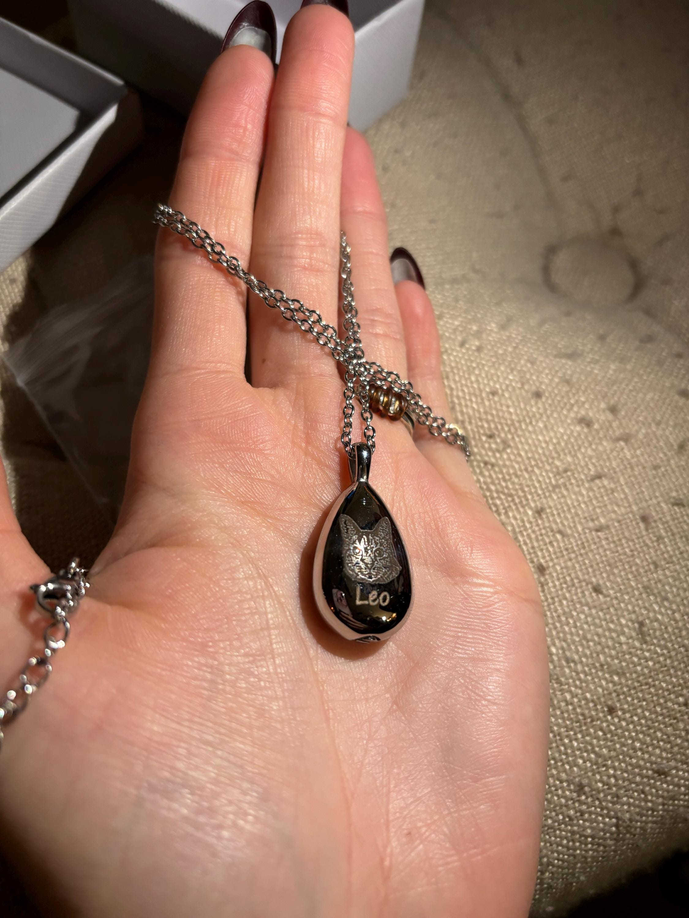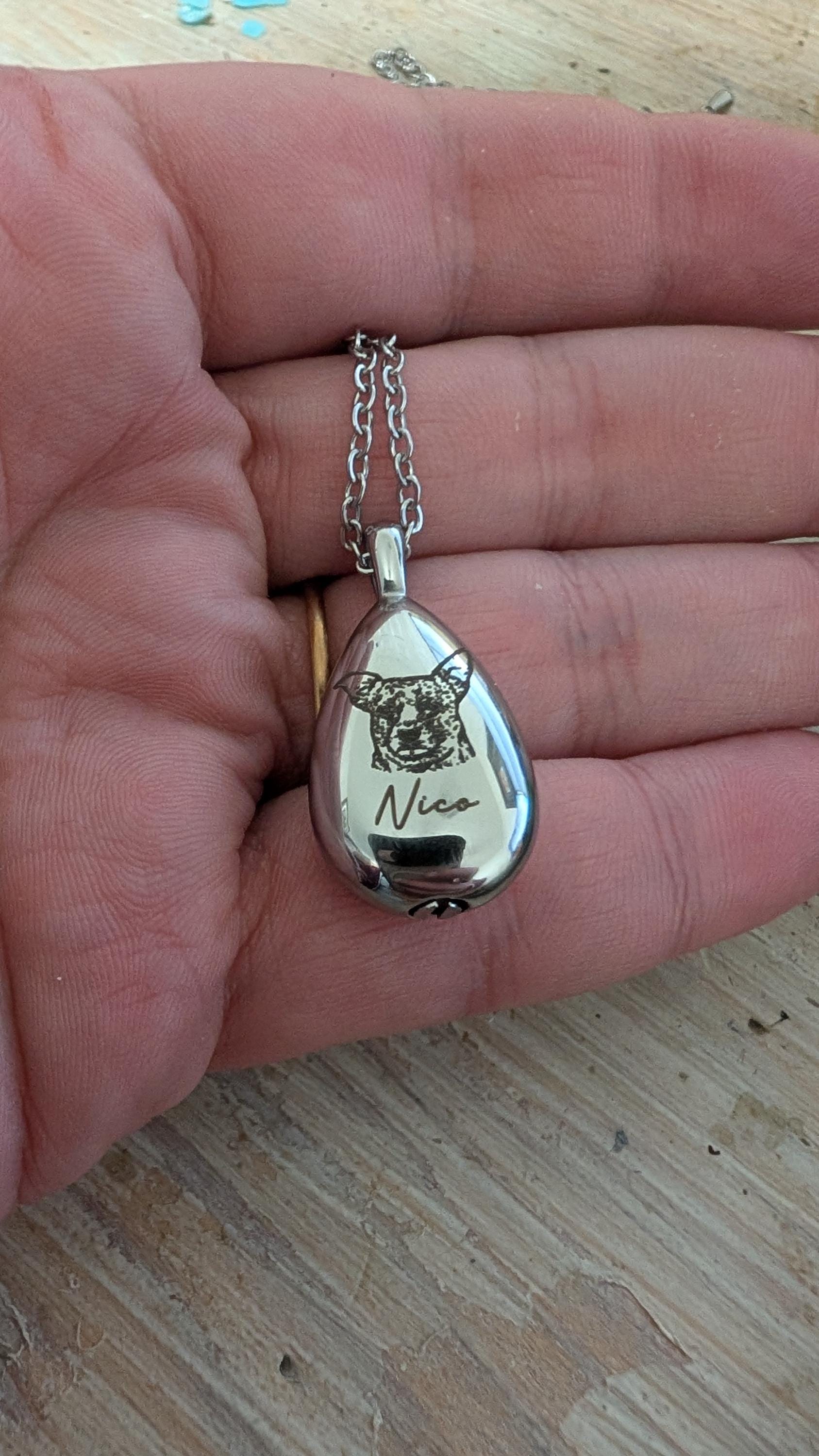 MAKE IT SPECIAL: Personalize your urn necklace with an image of your pet or custom paw print. After checking out, please send us a message with 2-3 images. While we are more than willing to engrave any pet portrait you send us, please keep in mind that a well-lit, clear photo will provide the best result.