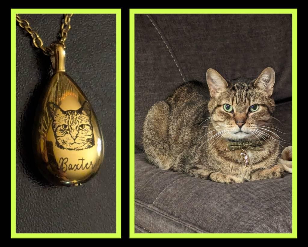 This is such an awesome necklace, the quality is great. It is surprisingly heavy for how small it is and has a really nice weight to it. I looked for a long time to find the perfect urn necklace to keep my sweet, departed kitty near me at all times. I was unsure if the etching would capture how my kitty looked, but it is amazingly accurate! I miss my kitty so much, but knowing I have a part of him with me in this necklace makes me feel a little bit better. Definitely would recommend for anyone looking to capture their beloved pets' essence.