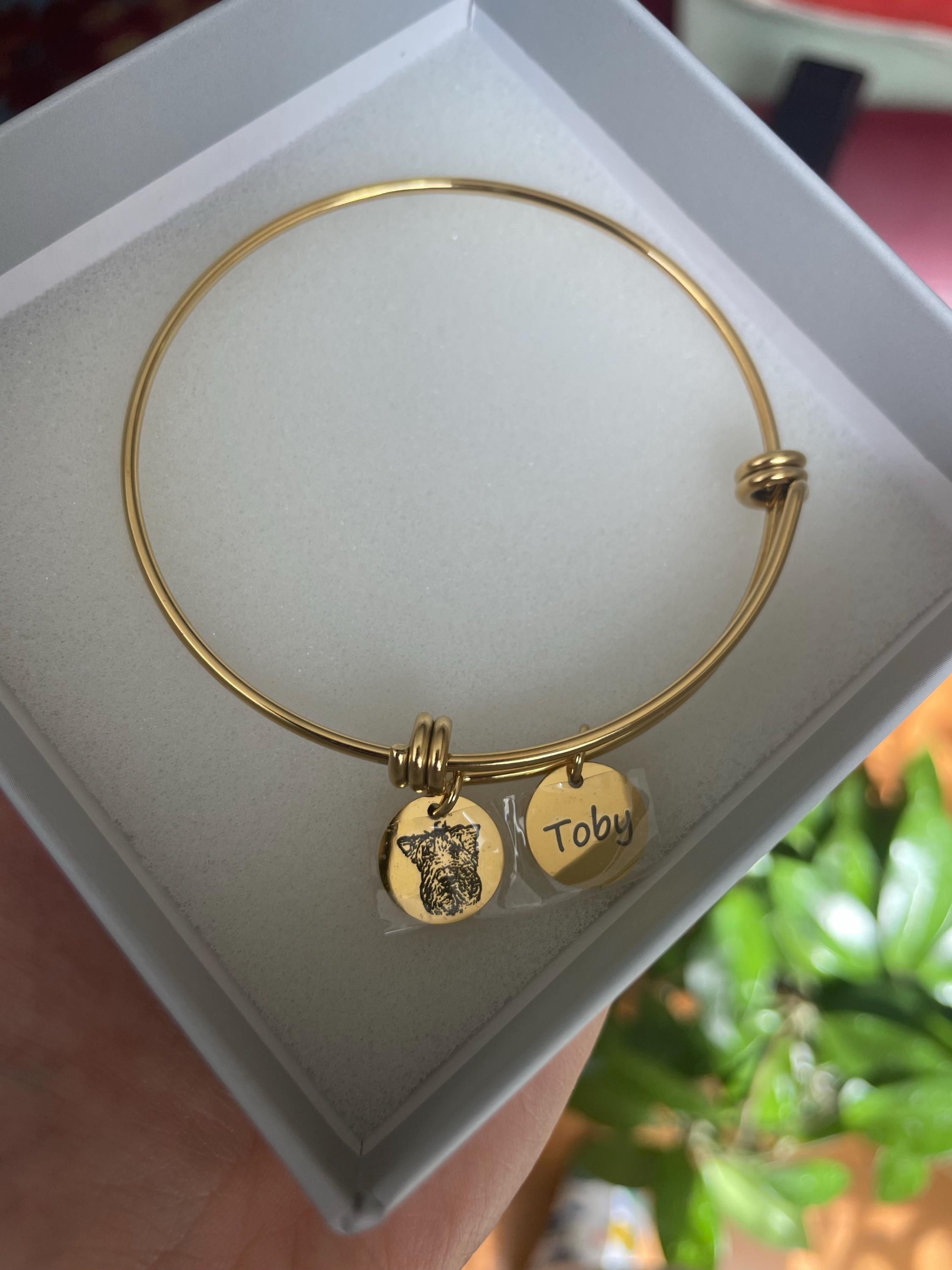 After the recent loss of my girl Scout, I needed something to carry with me throughout the day. This bracelet is perfect! From the quality of the bracelet to the image perfectly placed on the charm, this was more than I could have asked for to carry her memory. I can have my pup close, each and every day.