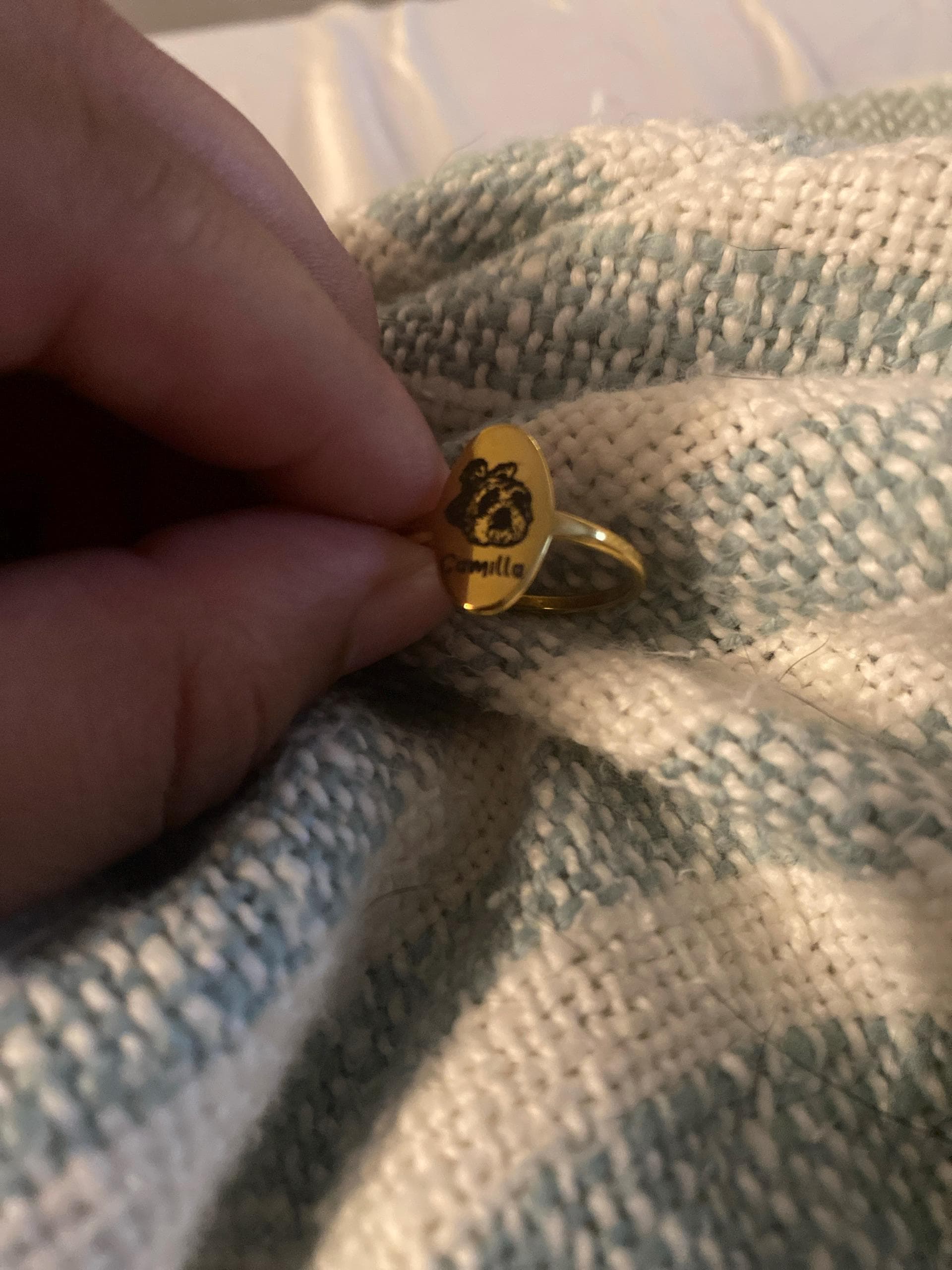 Such beautiful outwork! I got a ring of my cat in the font Daniela and it came out extremely gorgeous! There was a mishap with the first order and their customer service made sure to fix it ASAP! Highly recommend them. Also, the gold plating is great! Worn the ring for a week straight (during showers an everything) and no fading so far!
