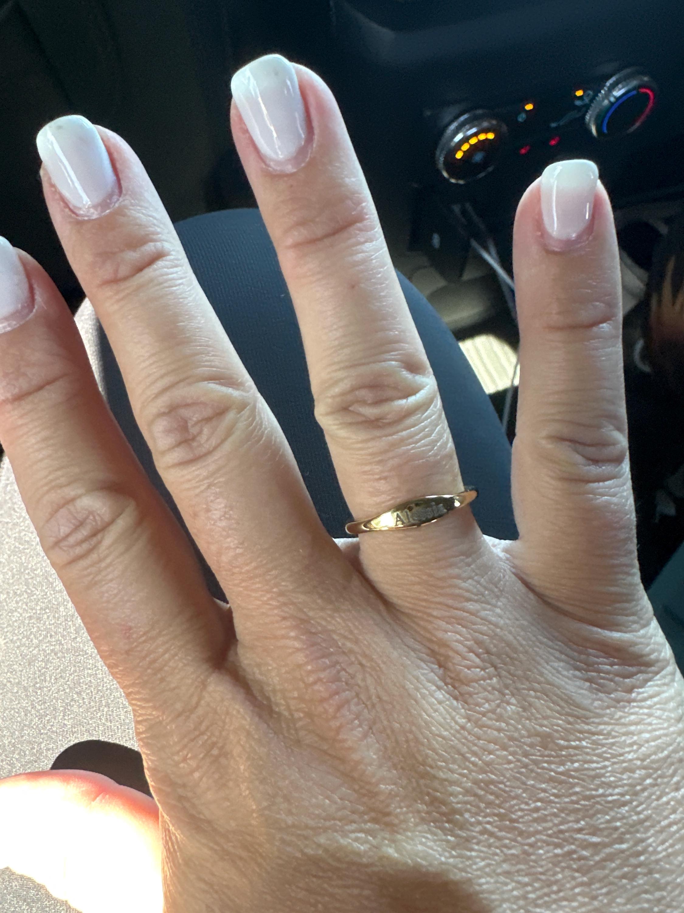 I ordered 2 rings they shipped fast, which was nice. But when I received them, they definitely do not look like they are pictured. Still cute, but definitely a little false advertising. I’d also say size down a half size. I’m a very true 5 1/2 and they are about a half size too big for the finger I wanted to wear them on. But like I said shipped fast, good quality, just different than advertised.