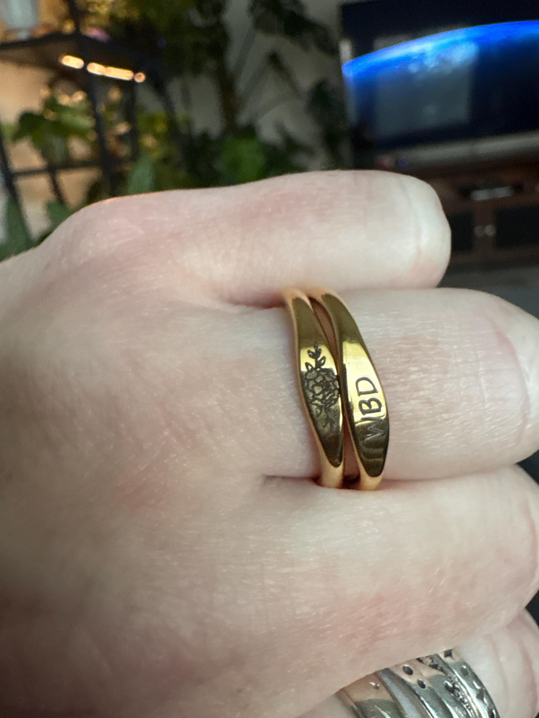 Subtle in style and bold in design, this flared ring is truly unique. Its sweet sentiments are reflected in its enchanting charm, making it the perfect option to add a touch of glam to your everyday outfit. Customize it with a name, initials, or a short message to give a personal touch that will warm the hearts of your bridesmaids, friends, or lovers.