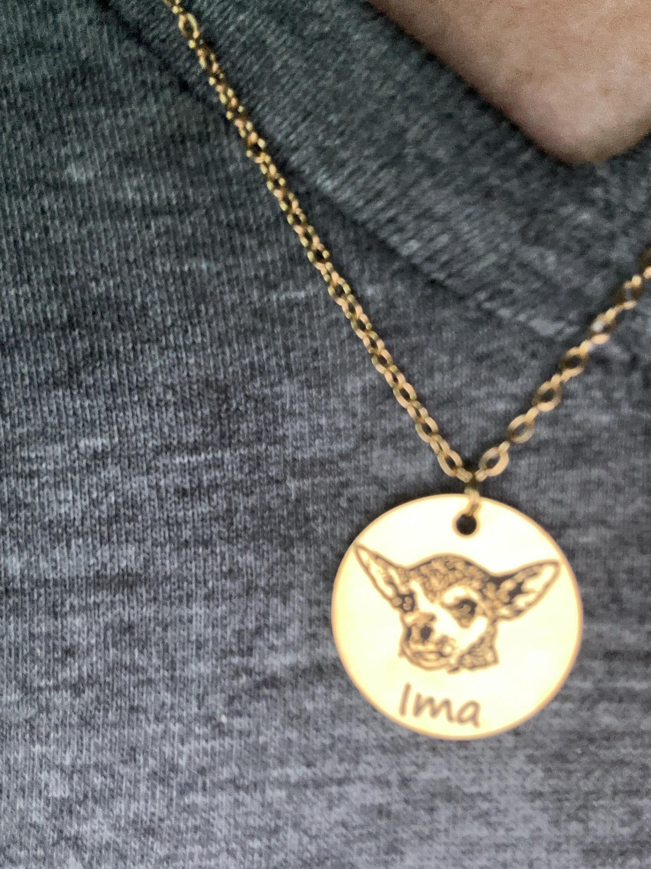 I adore my necklace! It’s exactly as described and looks just like the photo I sent. I actually sent two photos and let them choose which one would work best—and they nailed it! Highly recommend!