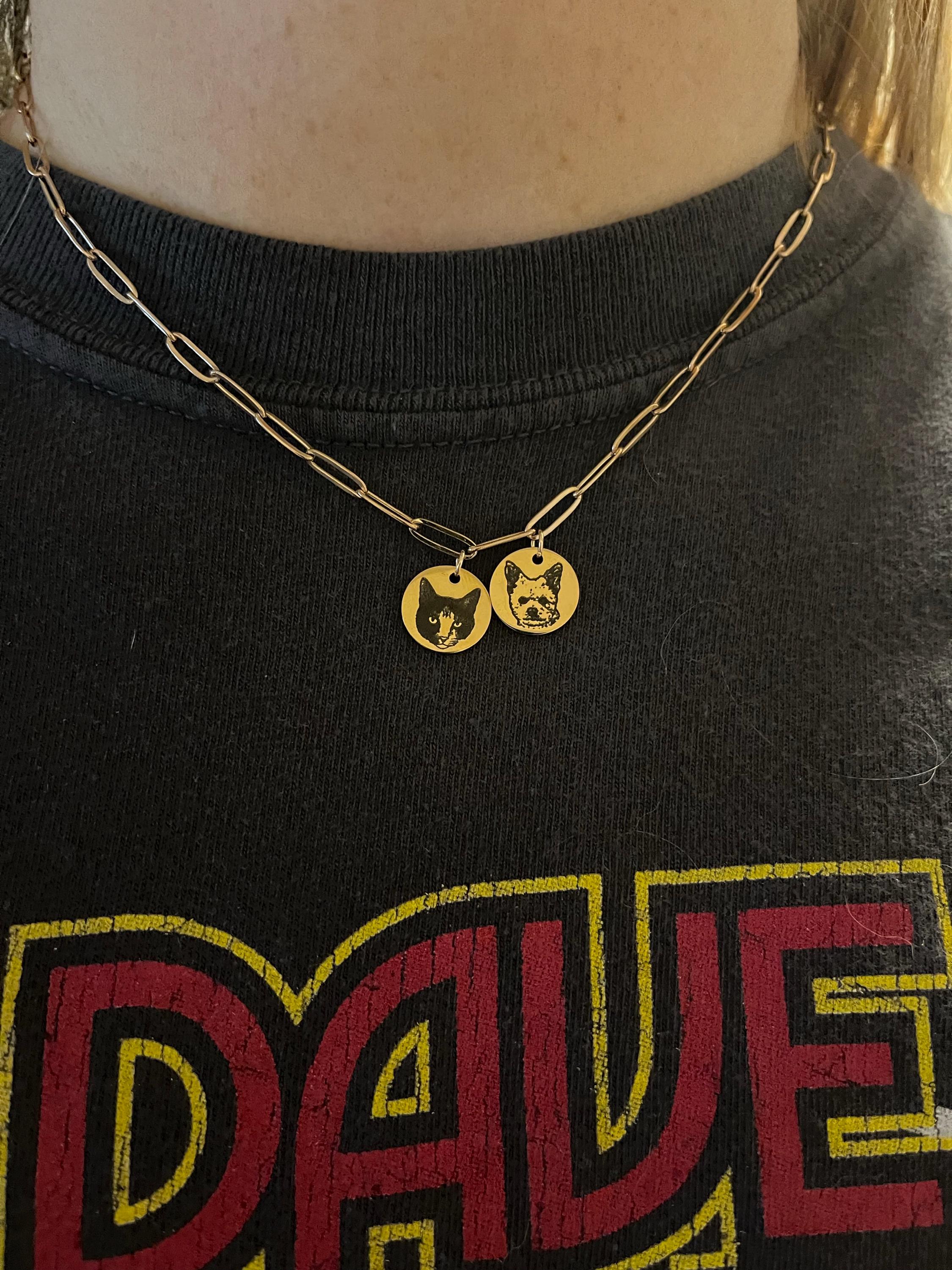 Introducing the custom pet portrait coin necklace — the gift every dog mom, cat mom, and animal lover didn't know they needed until now. This beautifully engraved coin pendant is personalized with a hand-crafted portrait of your beloved pet, paired with their name or nickname in your choice of elegant fonts. Dainty, meaningful, and made entirely to order — no two are ever alike, just like the pets that inspire them.