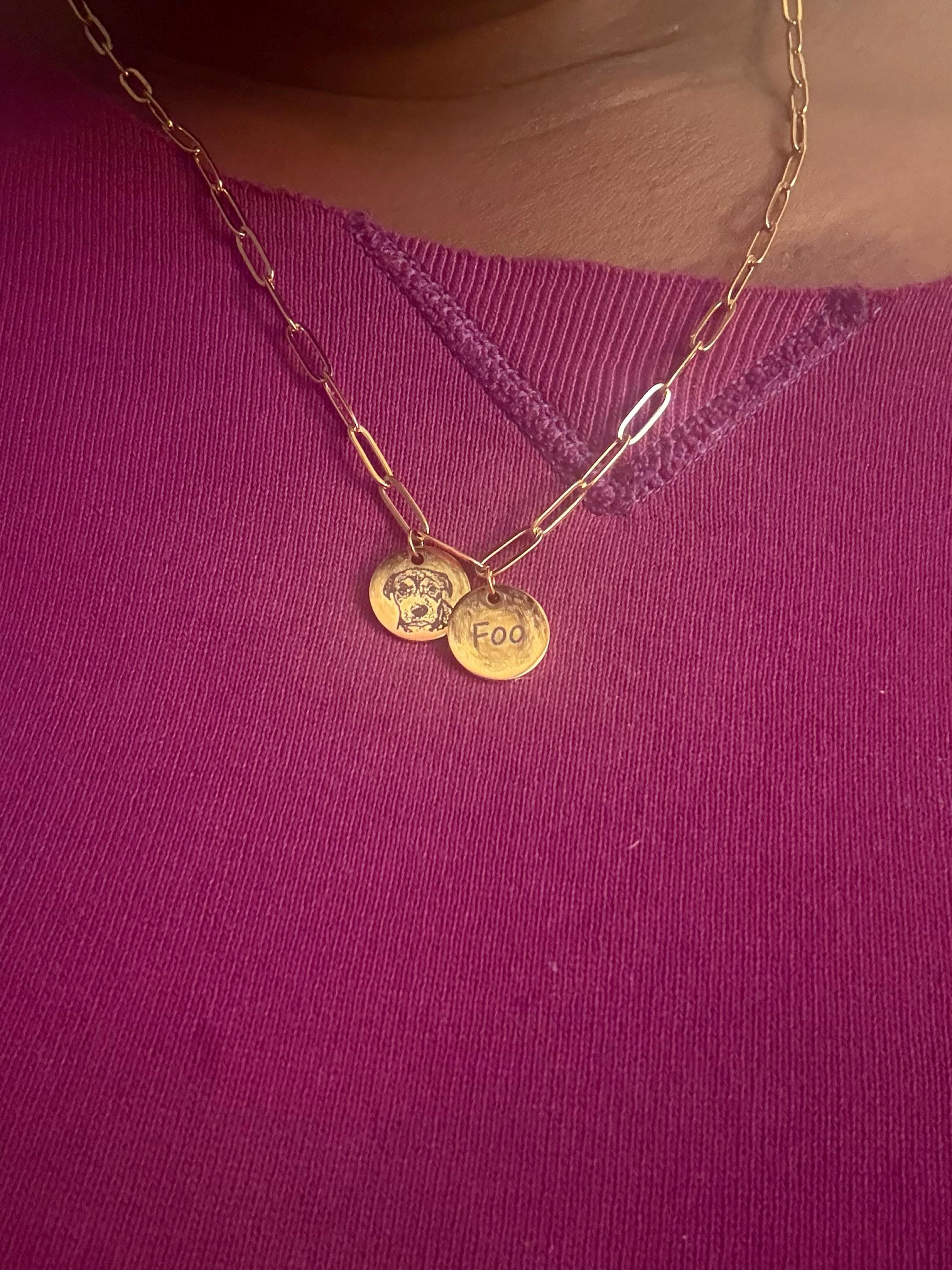 This coin necklace makes the perfect gift for that animal lover in your life! Personalize your necklace with a portrait of your beloved dog, cat, or pet along with their name or nickname to create the perfect jewelry gift for pet moms. Choose between our fancy fonts for an extra special touch. Its delicate style makes it the perfect addition to any outfit! It is sure to be treasured for years to come.
