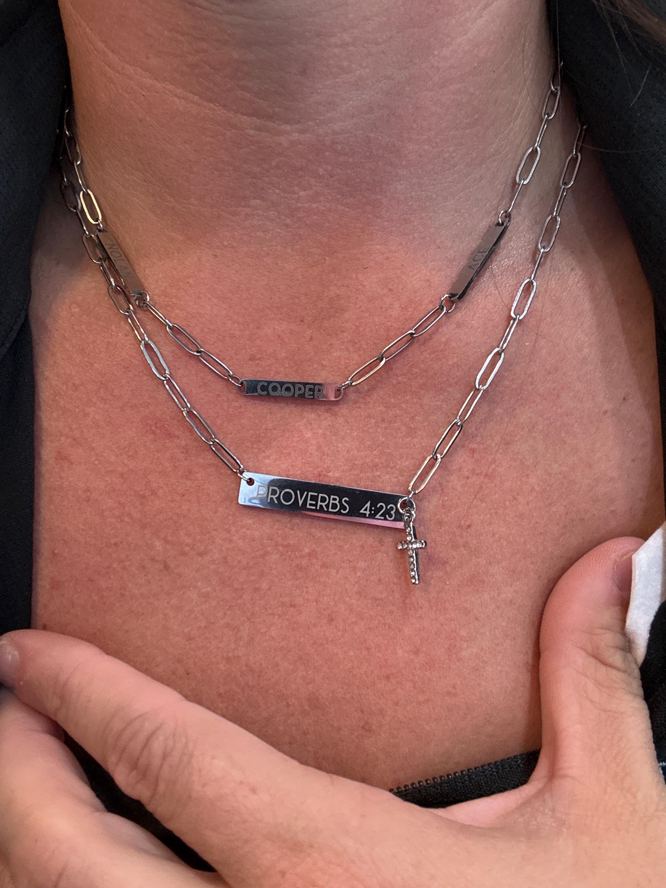 Timeless and effortless, our classic bar necklace is perfect for religious inscriptions. Proudly celebrate your faith by personalizing the pendant with bible verses, perfect for custom Christian necklaces, custom faith necklaces, and baptism gifts. The minimalist qualities will add just the right amount of shine to any outfit, making it perfect for daily wear and for special occasions. Show that special someone just how much you care with this meaningful gift that is sure to charm and inspires.